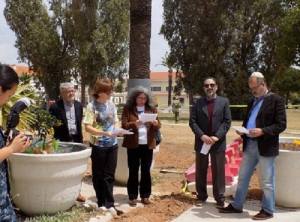 Además de encender las seis velas tradicionales, este año hemos conmemorado el día con la plantación de un árbol en memoria de las víctimas. El árbol nos ha parecido apropiado como símbolo tanto del ser humano como de la Torá. Empleando la simbología de los cuatro componentes principales del árbol como son sus raíces, su tronco, sus ramas y sus frutos, comparamos este árbol con nuestros raíces que son nuestros antepasados, con nuestro tronco que es la totalidad de nuestro pueblo, con nuestras ramas que son las comunidades que hay por todo el mundo, y con nuestros frutos que son las buenas acciones que realizan diariamente los justos entre nosotros. El árbol que hemos elegido es pequeño, pero fructífero, dando sus frutos dos veces al año: lo tomamos como ejemplo de la acción.